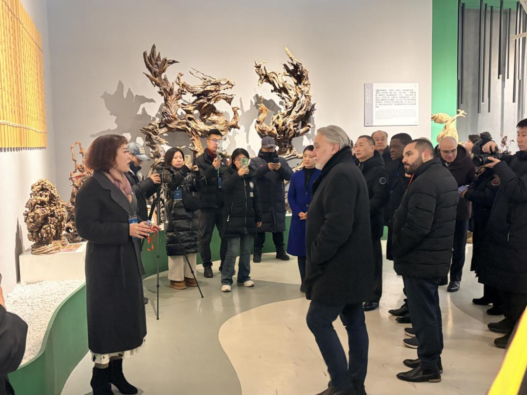 学生志愿者全程协助外宾,走进化纤集团、松花湖雪场和陨石博物馆等,协助外宾了解吉林市产业、冰雪和文化资源,表现出了扎实的语言功底、良好的职业素养和综合应变能力。张磊老师凭借深厚英文素养,为外宾生动介绍了松花湖浪木独特的文化底蕴与艺术价值,外宾专注聆听,频频颔首,对张老师的讲解做出高度评价。